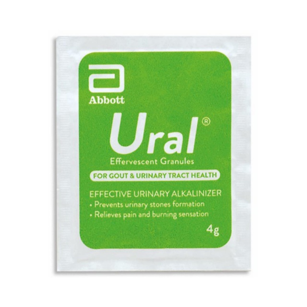 Ural effervescent powder is a urinary alkaliniser, which works by raising the ph of urine. Ural effervescent powder provides effective relief from the burning pain by neutralising the acidity of the urine. 100 hari, 1 orang doktor telah menjawab . Not to be used for children under 12 years. Ural effervescent granules 4g 28 sachets for gout urine pain new .